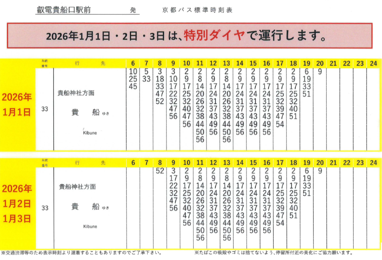 正月三が日の京都バス臨時便について