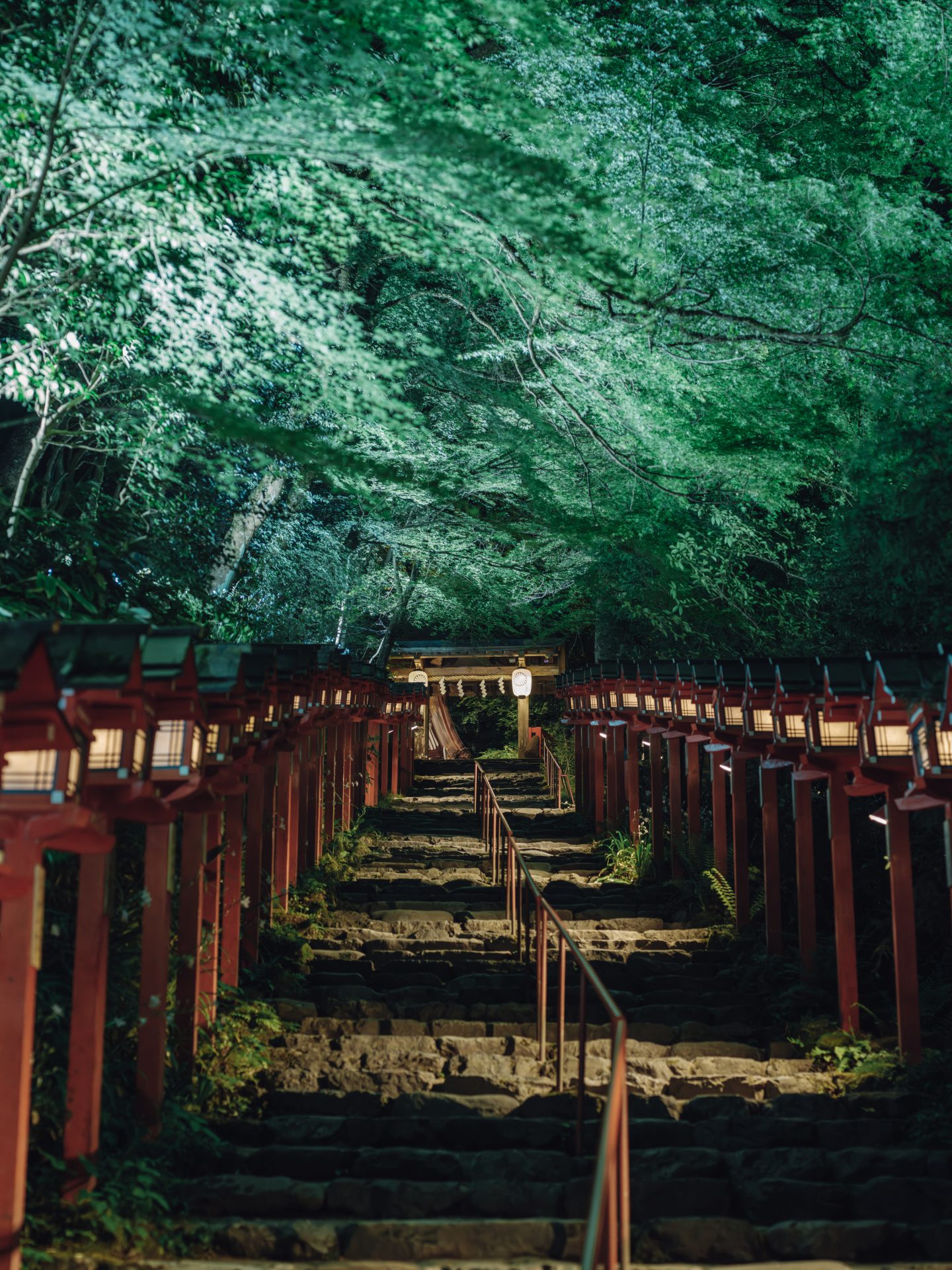 創建の地である奥宮が洪水で流損したため、天喜三年(一○五五年)現在の地に本宮が移されました。以来、文久三年(一八六三年)までに三十六回余の御造替(ごぞうたい)が行われ、大正十一年には国費をもって大修理が行われました。現在の本宮は平成の御造営事業により、基礎からすべてを一新し建て替えられたものです。社殿前の石垣からこんこんと溢れる御神水は貴船山の湧き水で、霊泉に浮かべると文字が浮かぶ「水占みくじ」が有名です。